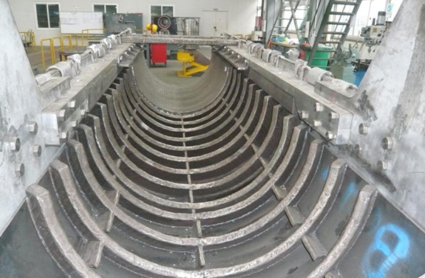 高爐旋轉布料溜槽是布料器的重要部件,它的位置在高爐爐頂的喉口位置,每次物料都從這里落下,高爐旋轉布料溜槽要承受很大的沖擊,這使高爐旋轉布料溜槽的使用壽命受到了很大的影響。還有爐頂的溫度一般都是在300℃左右,有的時候還會有很多含有二氧化碳的煤氣,對布料溜槽造成傷害。但是正常工作情況下,布料溜槽需要幾個月持續(xù)工作,所以它的使用壽命要達到一年以上。所以布料溜槽的使用壽命就成了一個很重要的問題。很多的技術人員都在想辦法提高高爐旋轉布料溜槽的使用壽命。
